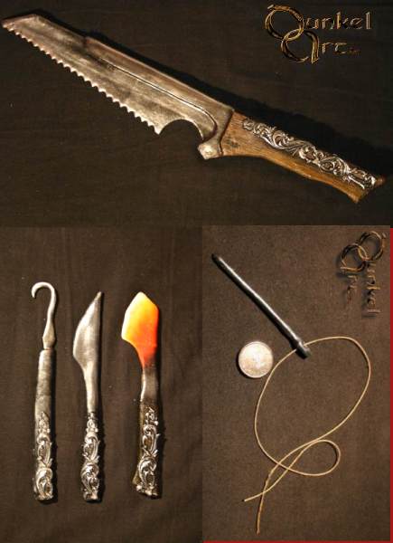 Was ich auch empfehlen kann, ist ein Aderlass-Set. Messer oder Nadeln kann man viel verwenden, echte Flieten dürften schwer zu bekommen sein. Eine schöne Schüssel aus Zinn zum Auffangen des Blutes ist aber relativ leicht bei Ebay zu bekommen. Mit Zwei-Komponenten-Blut (aka Zauberblut) und nem Beutel Kunstblut könnte man so ne tolle Show abziehen... -------------------- LARPMagier.de - Die Seite für LARP-Magie und -Mystik (samt Alchemie u.ä.)